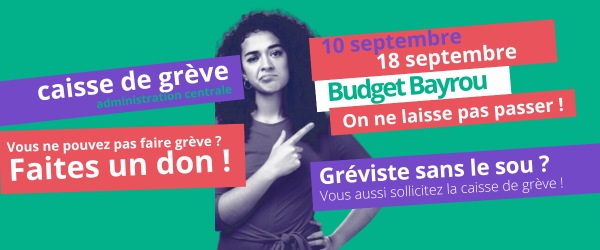 Si l’immense majorité des collègues rejettent le projet de budget Bayrou-Lecornu, tous et toutes n’osent pas faire grève ou n’en ont pas toujours les moyens. Pour cette raison et comme nous l’avions fait au moment du mouvement des retraites en 2023, la CGT Educ’action administration centrale met en place une caisse de grève.