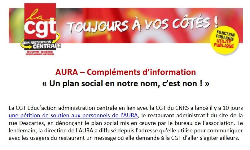 AURA – Compléments d’information « Un plan social en notre nom, c’est toujours non ! »