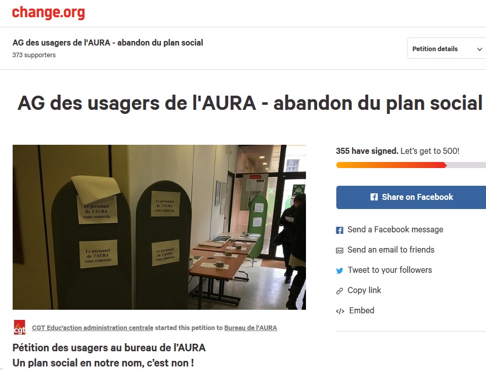 AURA – Pas de licenciements économiques en notre nom ! – Pétition à signer